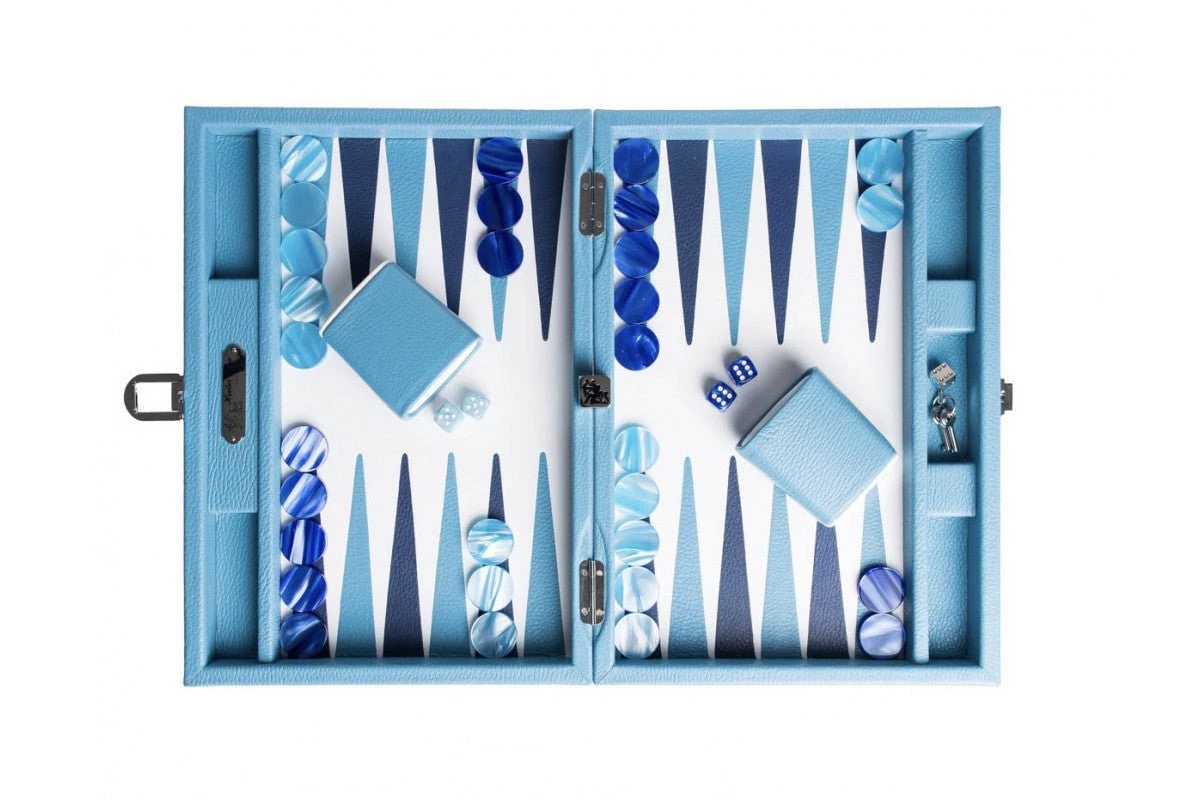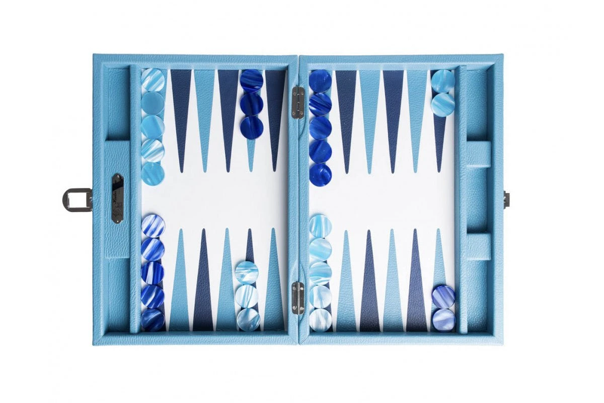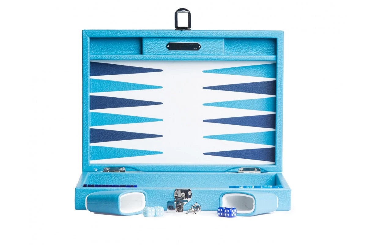 Backgammon en cuir véritable bleu ciel.