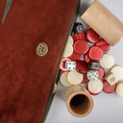 Backgammon Cuir Véritable GM – Vert / Orange – Renzo Romagnoli