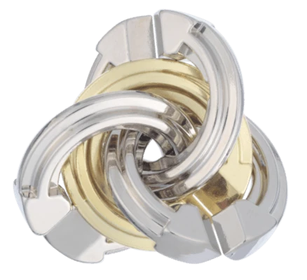 La forme de chaque anneau a été minutieusement calculée afin de limiter fortement le nombre de mouvements possibles, créant ainsi un casse-tête extrêmement déroutant — summum d’une longue lignée de casse-têtes ardus créés par un maître en la matière.