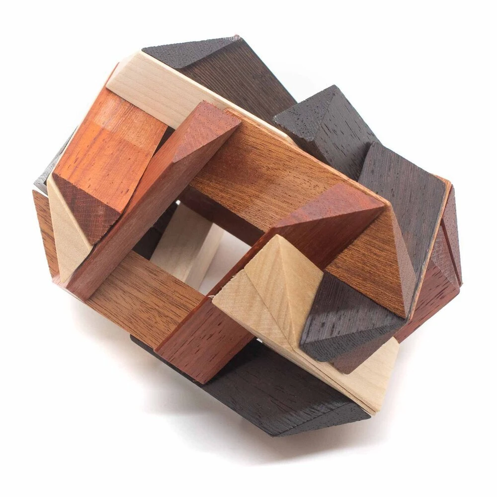 Démolir puis reconstruire la forme à l’aide de pièces de bois d’essences différentes.