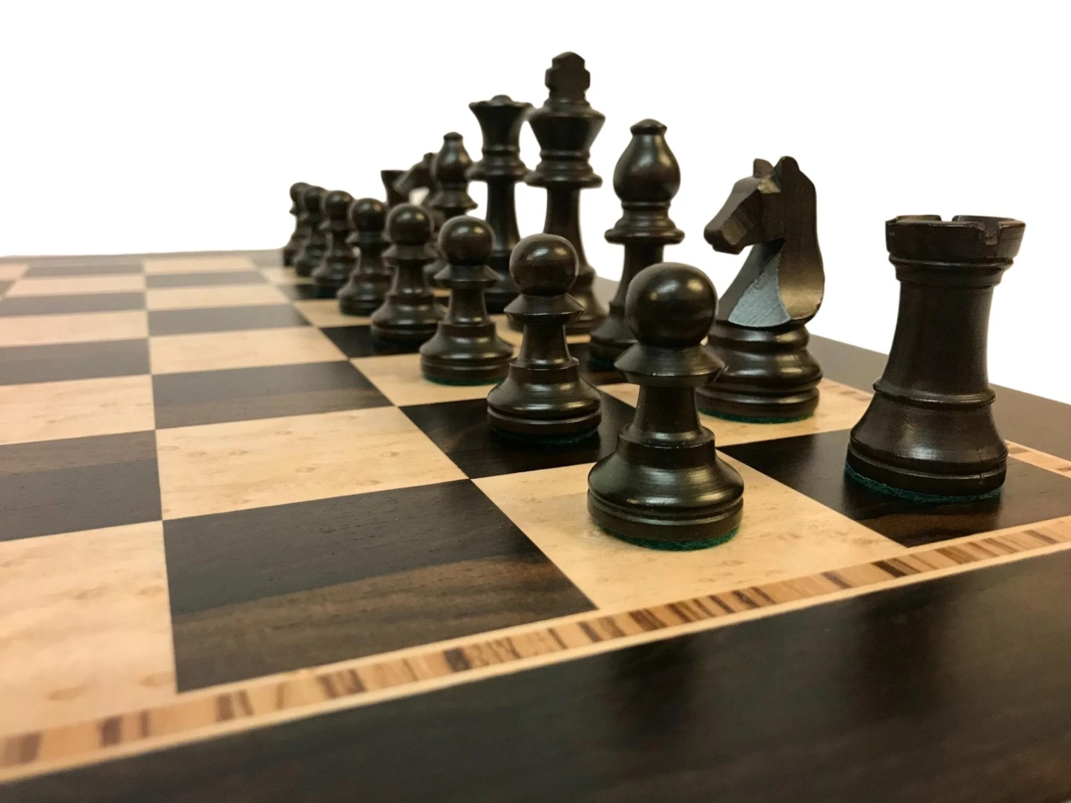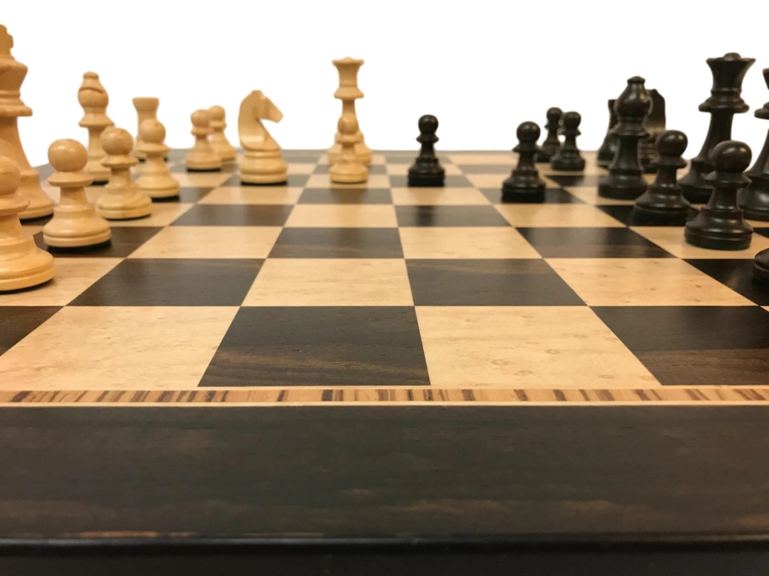 Magnifique échiquier composé des plus précieuses essences de bois, profondes et aux nuances infinies.