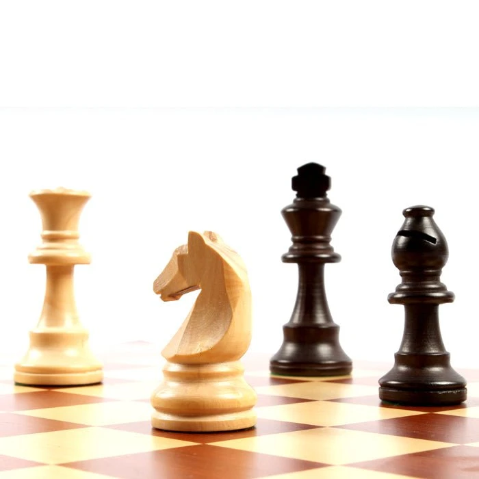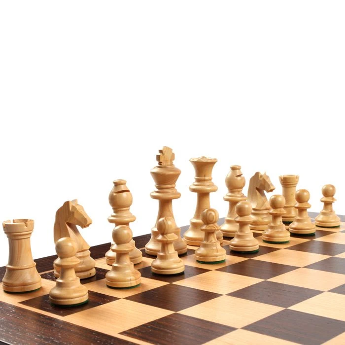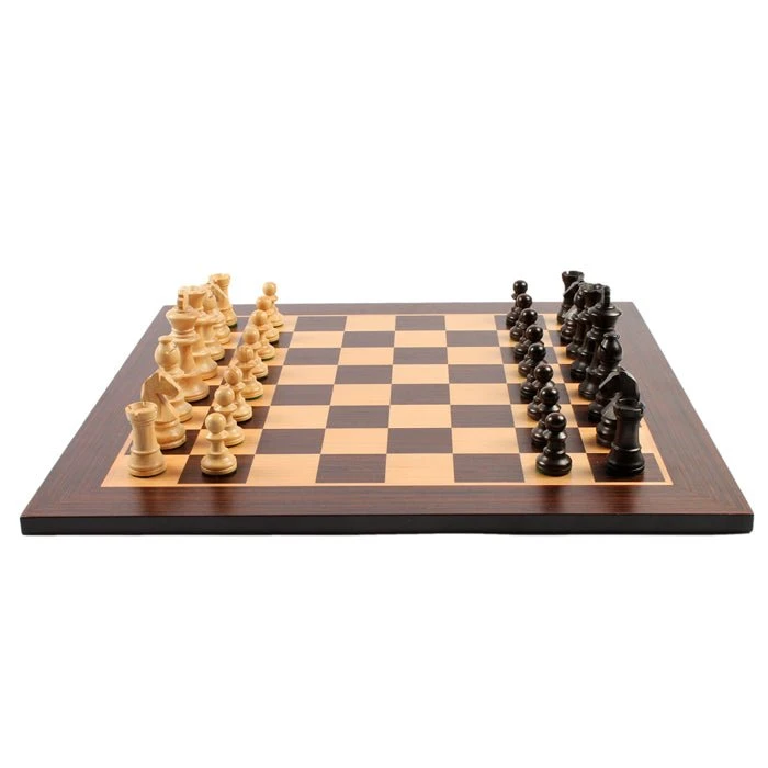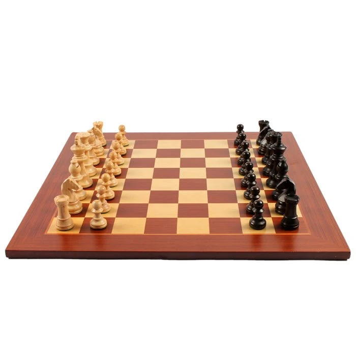 Ensemble d’échecs classique composé d’un plateau en marqueterie