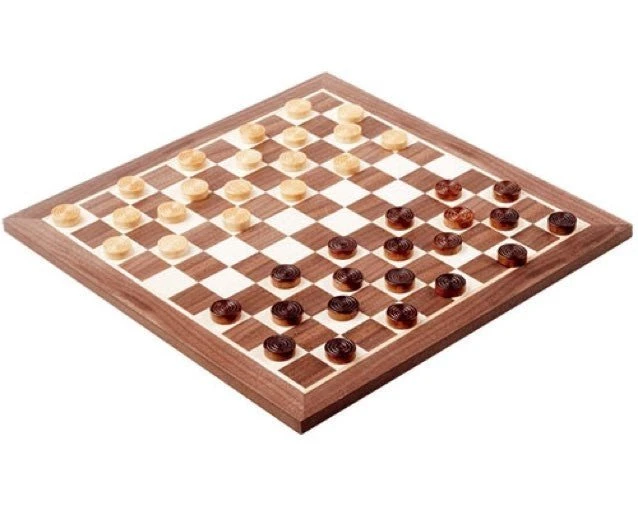 Ensemble de dames françaises composé dun damier en marqueterie de sycomore et de noyer.