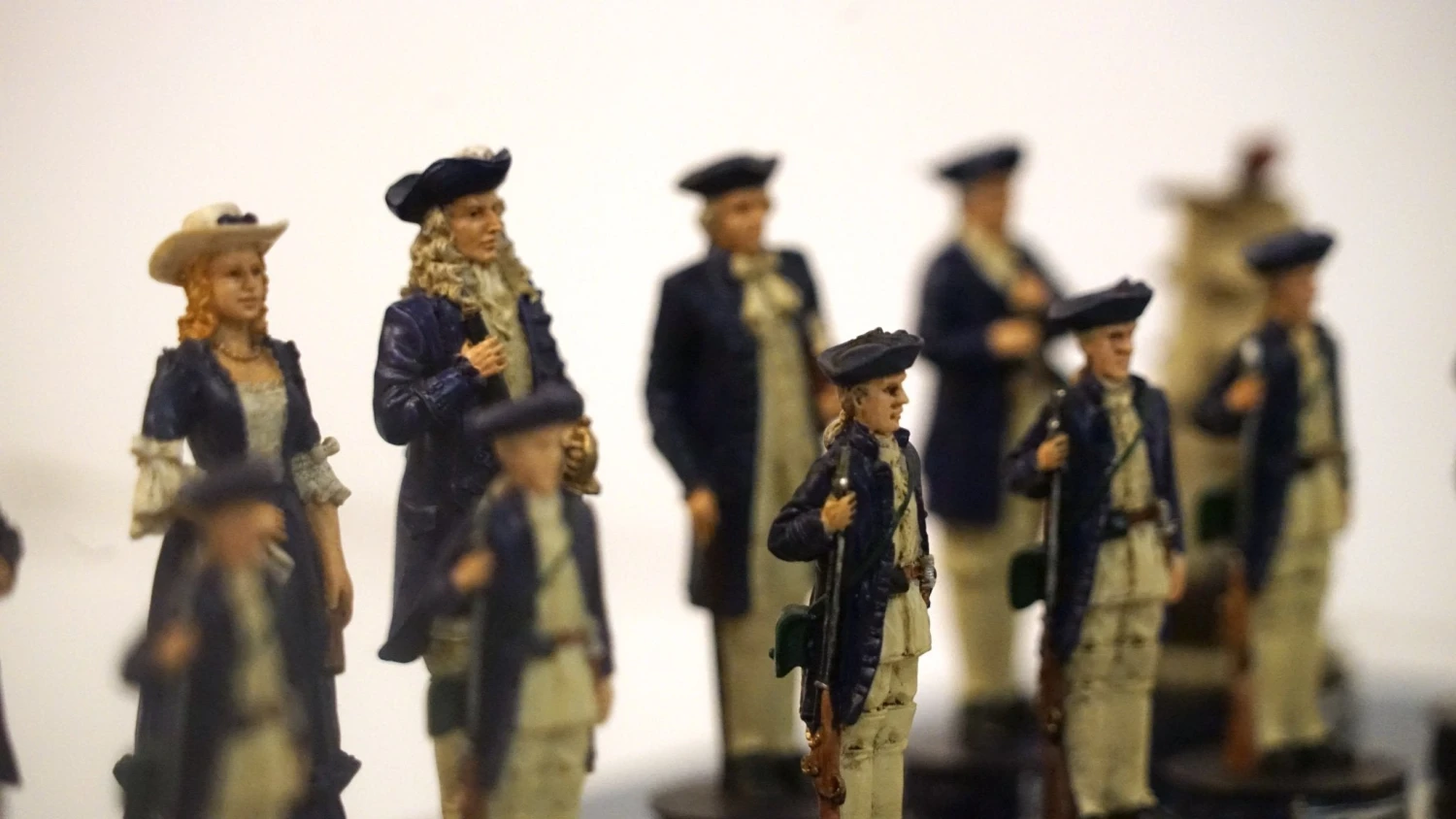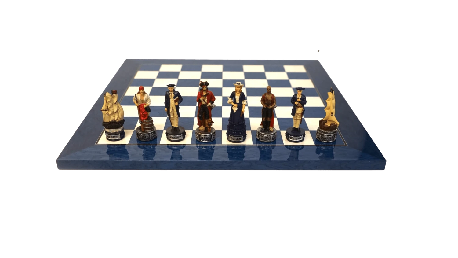 Magnifique ensemble comprenant un plateau en bois teinté et laqué, ainsi que des pièces en résine, peintes à la main faisant s’affronter les pirates et la marine !