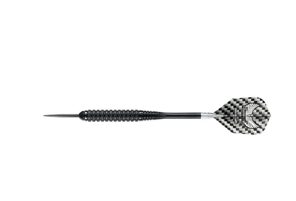 Fléchettes au fût en laiton côtelé de noir qui offrent un très bon grip.