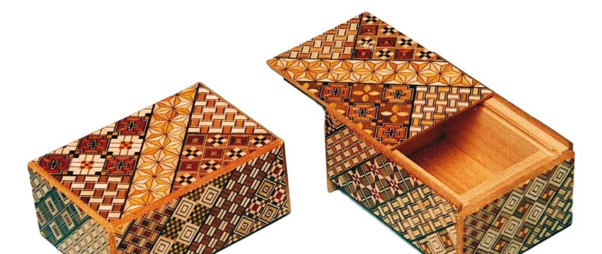Boite à secret japonaise, tout en marqueterie, fabriquée à la main à Hakone au Japon, selon un savoir faire ancestral.