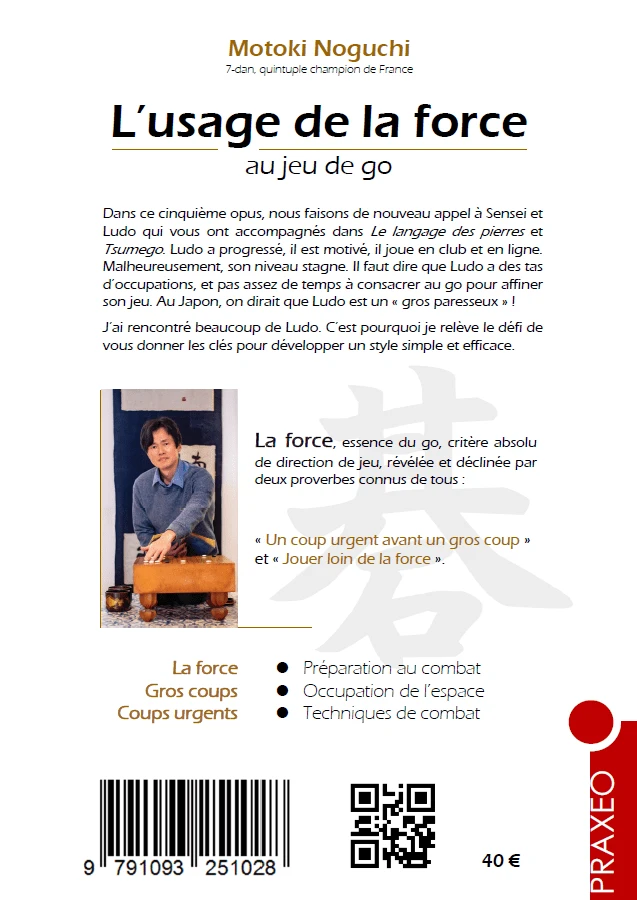 La force, essence du go, critère absolu de direction de jeu, révélée et déclinée par deux proverbes connus de tous : « Un coup urgent avant un gros coup » et « Jouer loin de la force ».