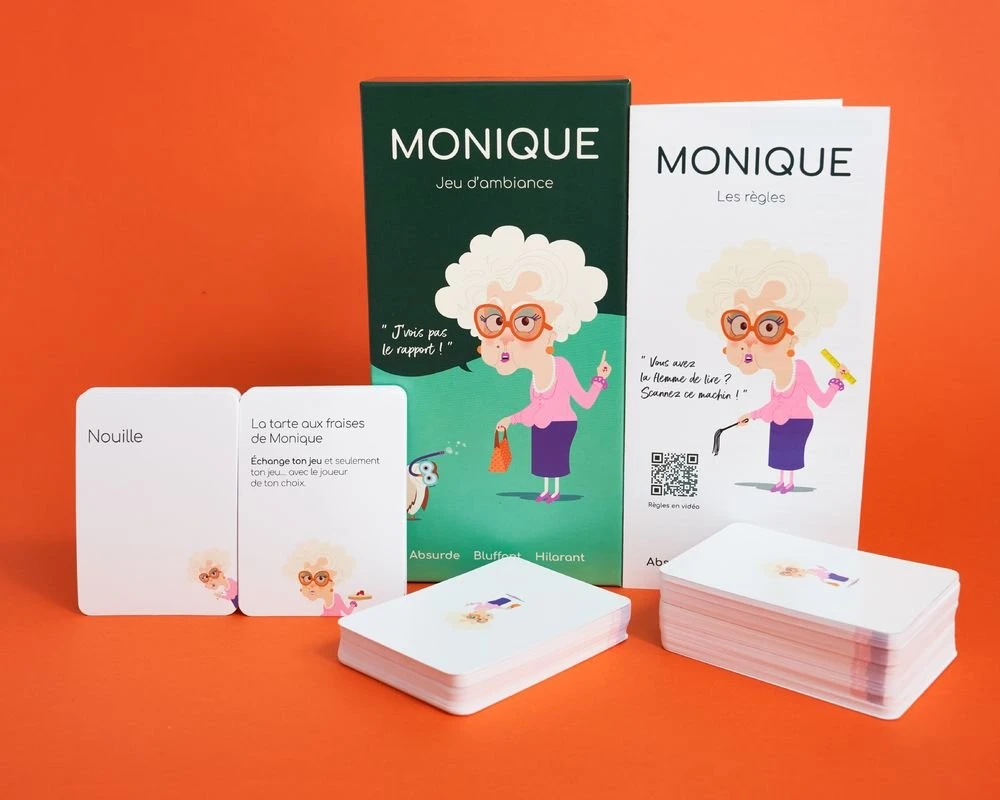 Monique est un jeu d’ambiance absurde d’associations de mots qui vous promet de passer des soirées délirantes !