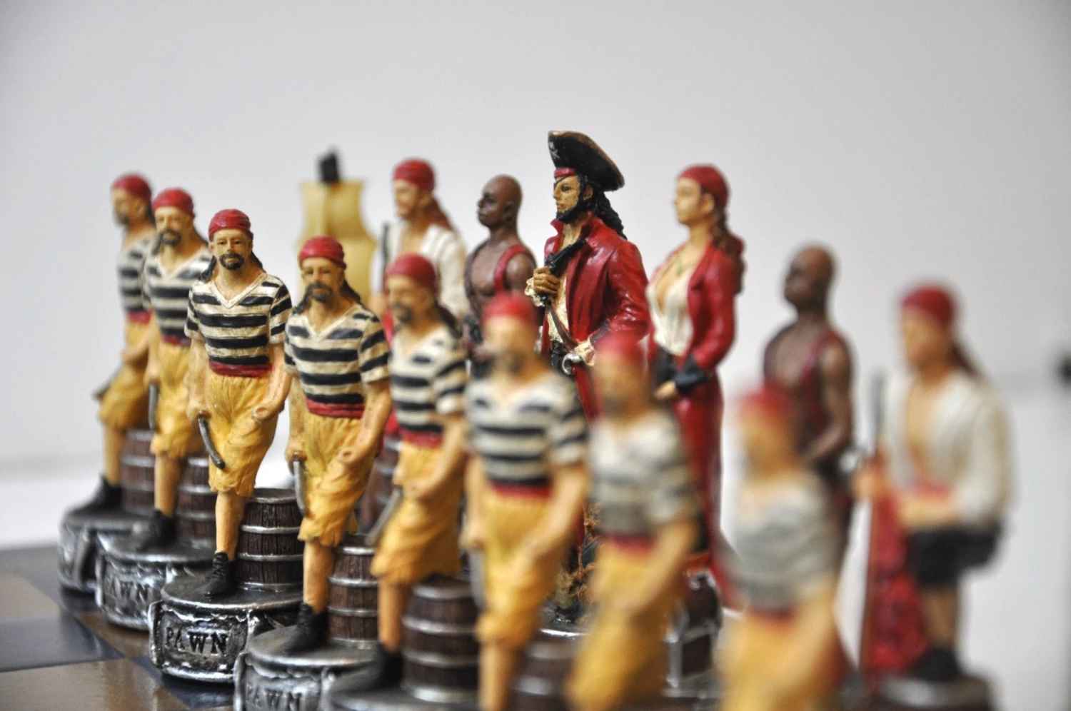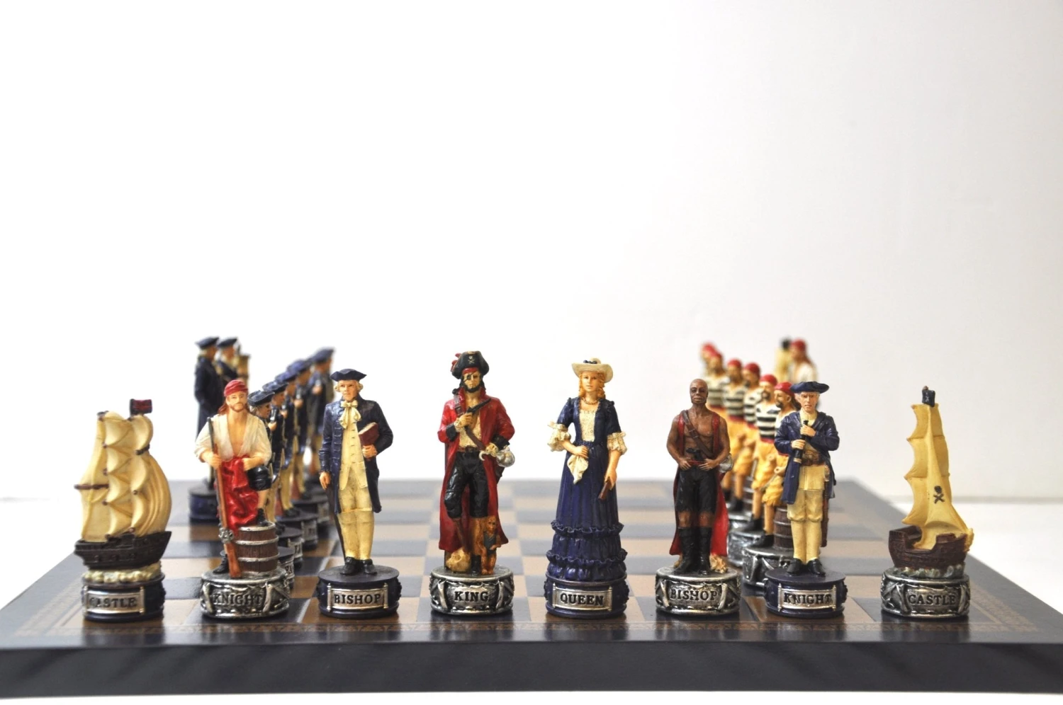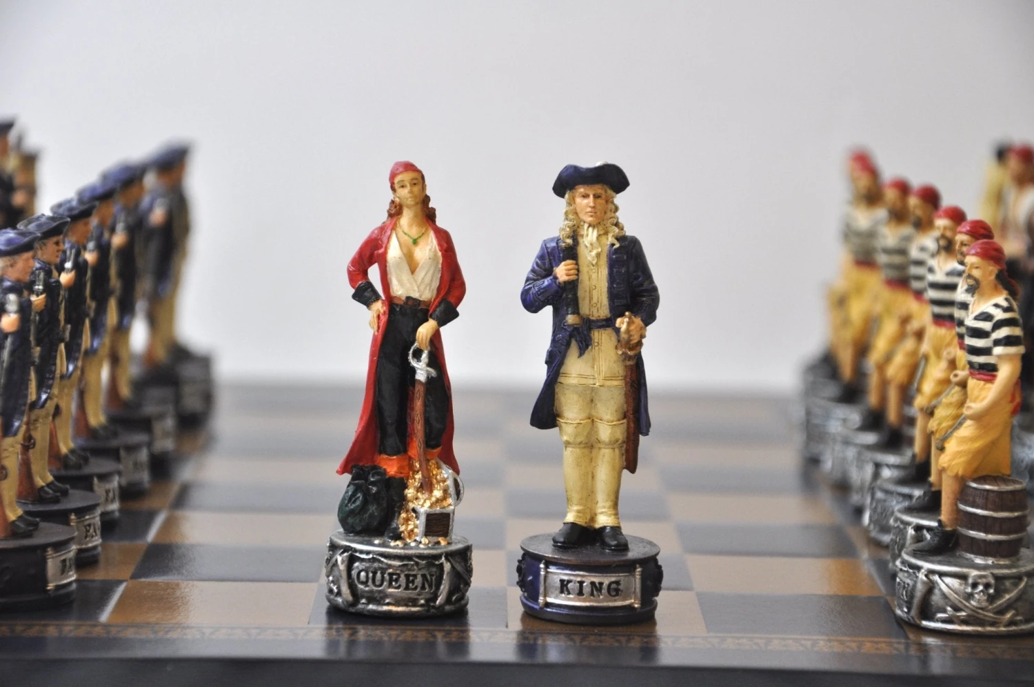 Pièces d’échecs en résine, peintes à la main.
