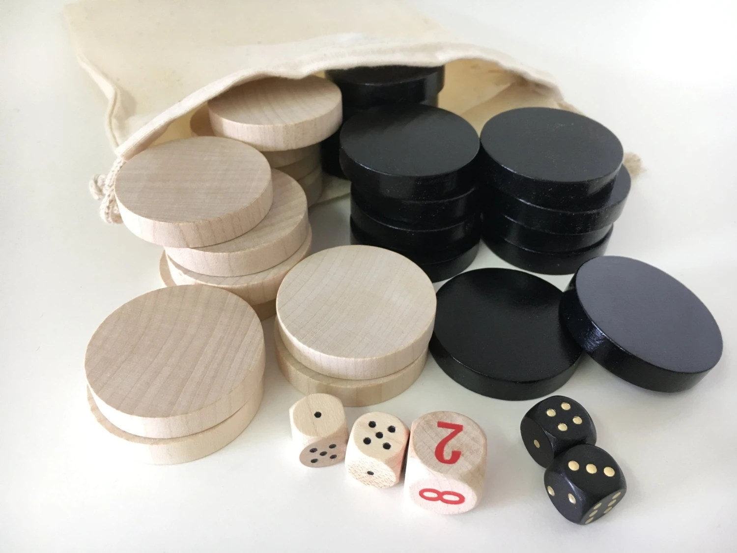 Pions de backgammon en bois.