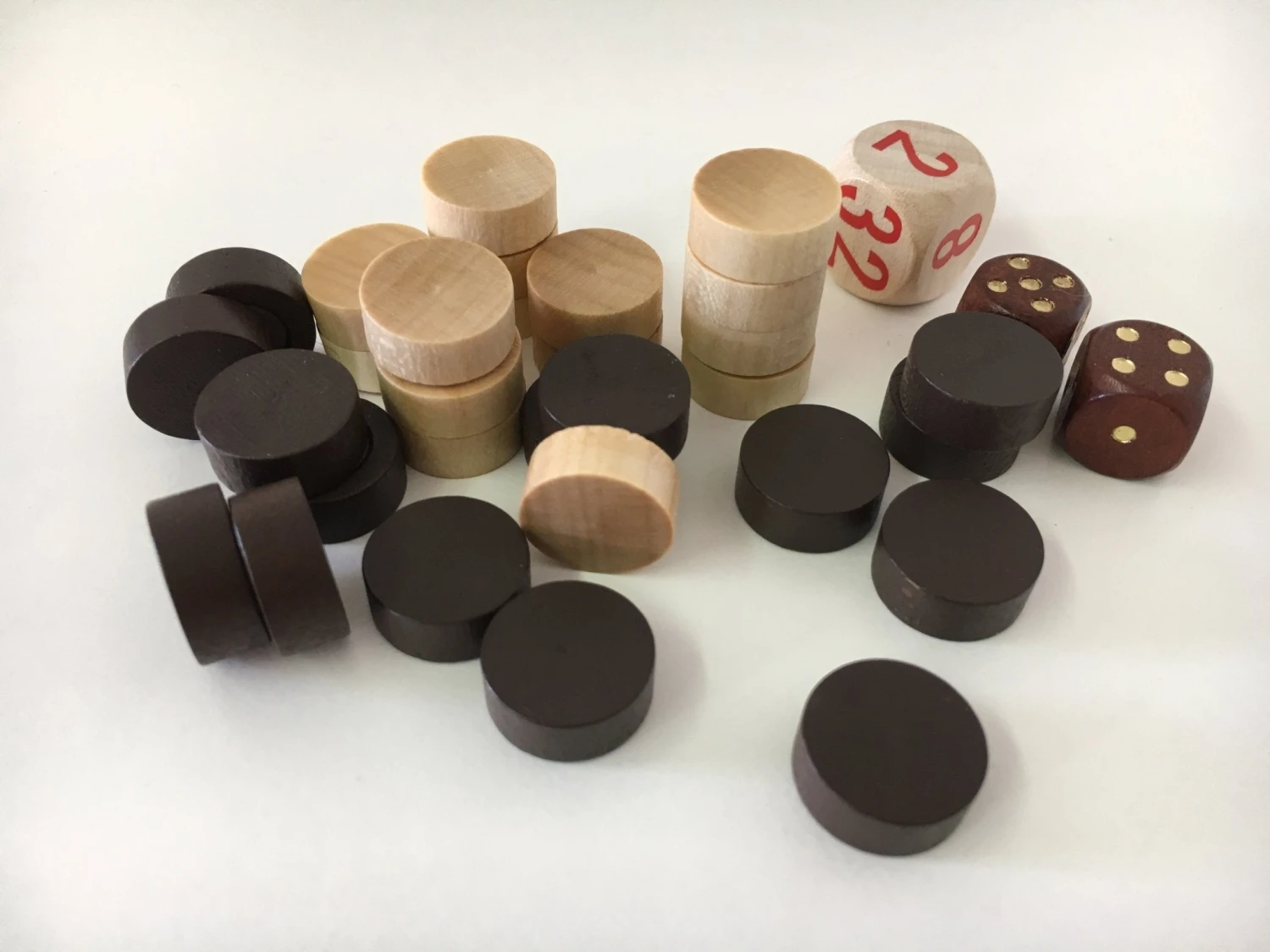 Pions de jacquet ou backgammon en bois, magnétiques de 15 mm de diamètre.