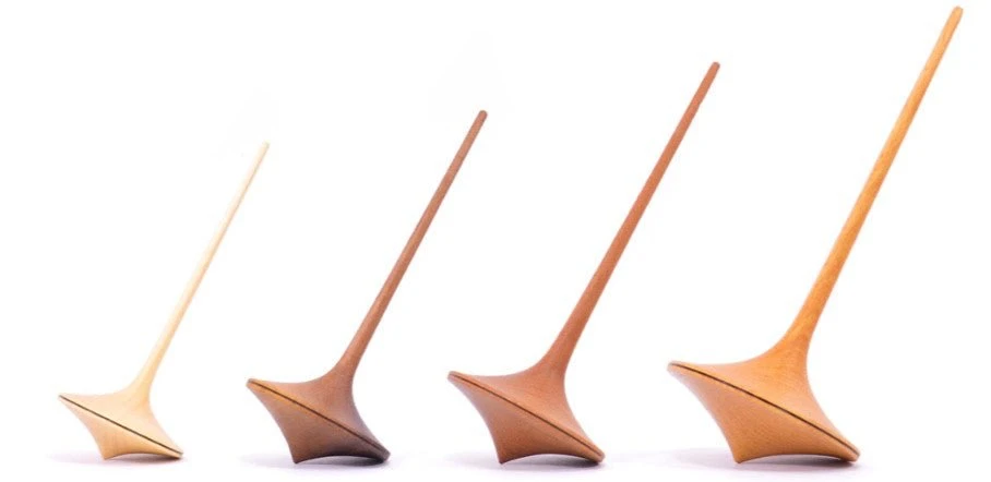 Toupies à frottement en bois naturel.