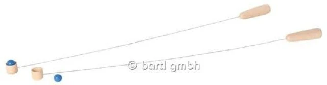 Jeu dadresse consistant à faire passer la bille dun godet à lautre, au bout de tiges souples en métal de 50 cm de long.